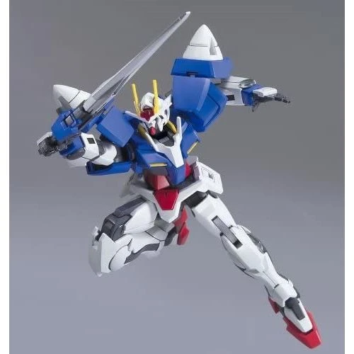 The star Mobile Suit from the second season of “Gundam 00” is now a sharp snap-fit model kit! 00 Gundam comes in easy-to-assemble plastic parts that are molded in color, along with a sheet of foil stickers, so painting is not necessary (but would add a more realistic appearance). Upon completion, its polycapped joints will give the Mobile Suit a wide range of motion for a world of posing possibilities! The Twin Drive System (GN Drives on each shoulder) are flexible, and the included pair of GN Sword II can switch between Sword Mode and Rifle Mode.