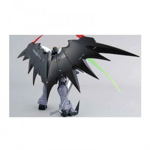 The iconic bat wings of the Endless Waltz version of Deathscythe Hell bring nostalgia to many a Gundam Fan in the U.S. Now available as a Master Grade, this version of Deathscythe Hell contains the latest MG technology offering superior plastic engineering, accuracy, and posability. New wing gimick allows for various extreme poses and contains various warning signs and markerings. Scythe is molded in bright transclucent green plastic and has spots to be slotted into the swappable hands. Action base connectors included for aerial posing.