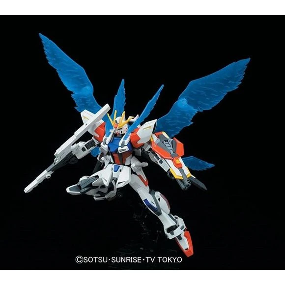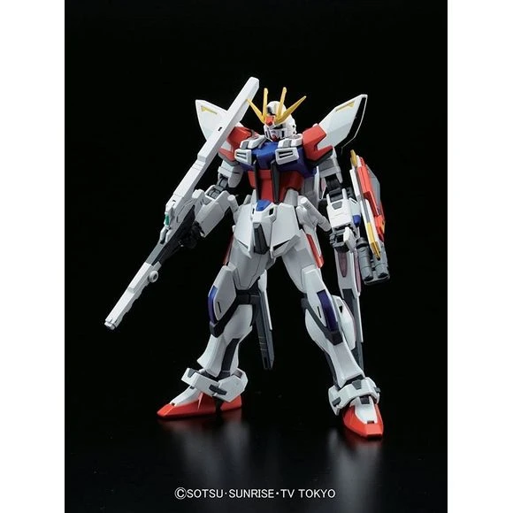 From the popular anime “GUNDAM BUILD FIGHTERS”, Reiji’s new personal mobile suit built by the protagonist, Sei based on BUILD STRIKE GUNDAM and equipped with the new “Universe Booster”. Weapons such as shield and rifle are replicated with opening and deployment gimmicks. Beam wing effects can be attached to various parts of the body. Beam rifle x1, beam saber x2, shield x1, rear beam canons x2, Personal display base.