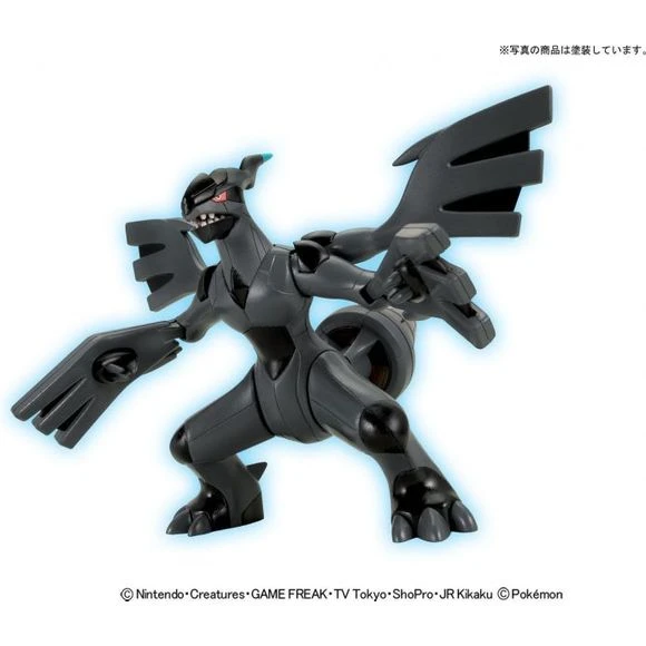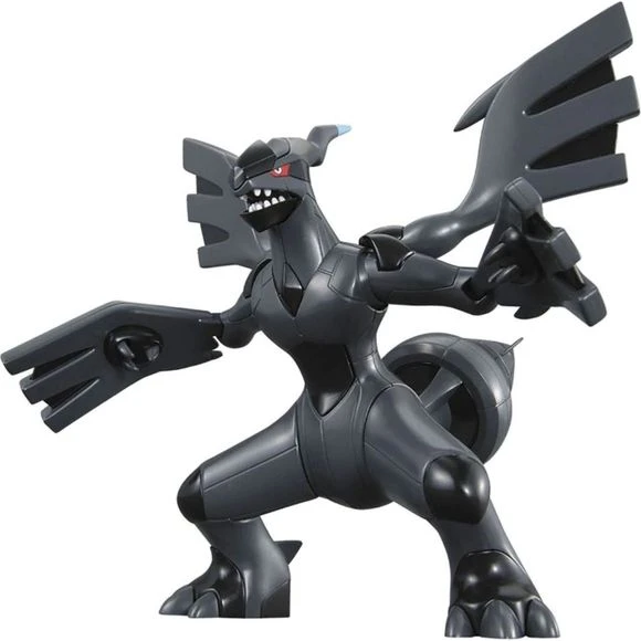 This ferocious-loking Zekrom Pokeman kit comes with ‘PokePura’ action which means it is designed so the wings flap when you move the head back and forth. All parts are molded in color and snap fit together so no paint or glue are required. Stickers for the eyes are also included.